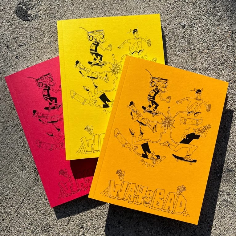 This is a collection of Way Bad skateboard comics that was published and released by The Secret Headquarters in Los Angeles. It's like looking at the internet, but on paper. You're more likely to get a papercut this way, but there's less chance of getting your feelings demolished by some 12-year-old Nebraskan scooter kid who wandered into the comments section.
